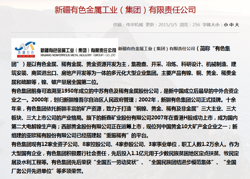• 合作單位:新疆有色金屬工業(集團)有限責任公
